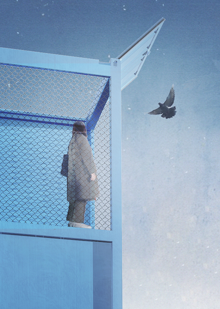 В основу проекта лёг образ свободного полёта — уединения посреди городской суеты в неспешных и успокаивающих ритмах качелей