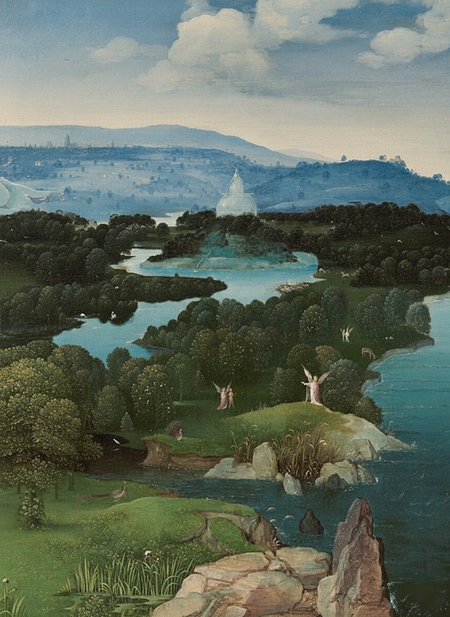 Иоахим Патинир (ок. 1480 — 1524), работавший в Антверпене, стал ключевой фигурой в процессе, когда скрупулёзная детализация, отточенная Яном ван Эйком в XV веке, была перенесена из интерьера в открытое пространство, что привело к рождению чистого пейзажного жанра. Он взял крошечную деталь пейзажа, которую Ван Эйк помещал в оконном проёме, и превратил ее в грандиозный, всеохватывающий «космический пейзаж».