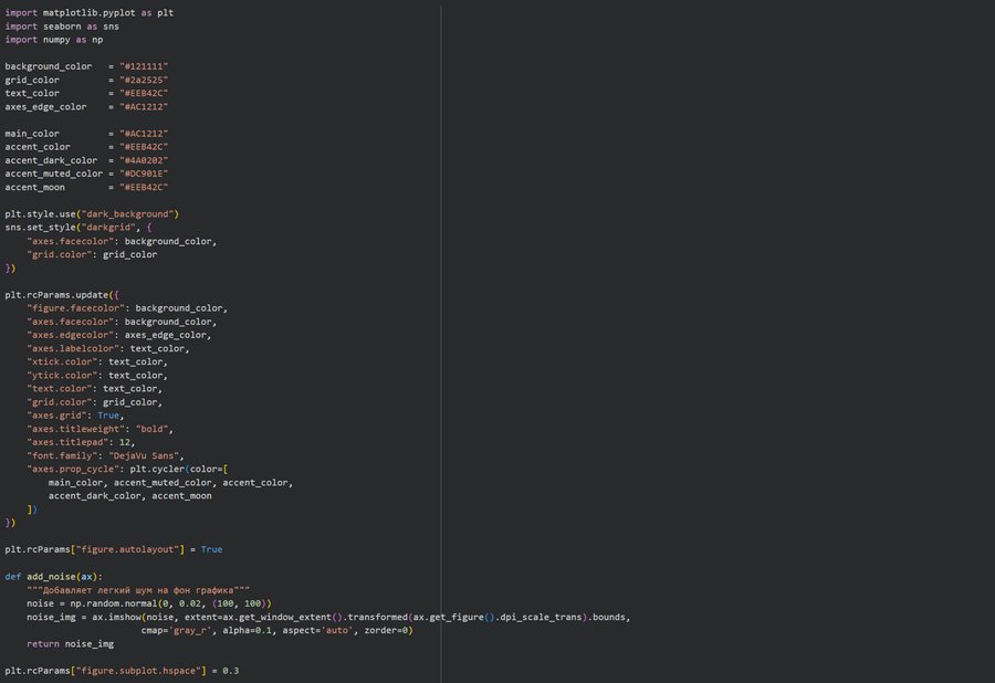 Для генерации цветовой палитры я обратилась к Perplexity с промптом: «Предложи оригинальную цветовую палитру для инфографики про фильмы об оборотнях в стиле нуар-хоррор». Получила палитру 1a1a2e, 16213e, e94560, 0f3460.