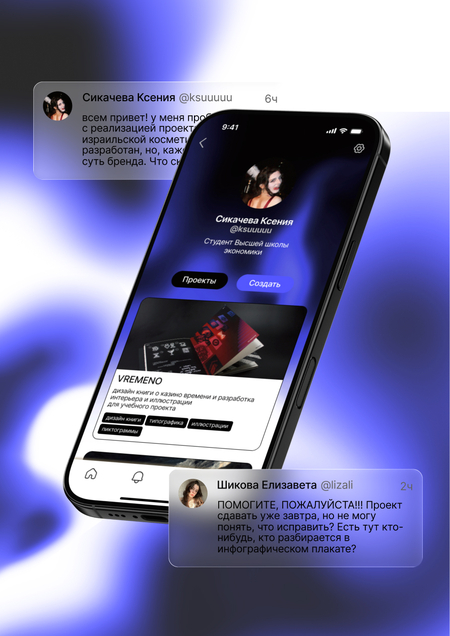 DIScuss — приложение, где люди могут делиться своими учебными проектами, получать комментарии других пользователей и искать менторов и приобретать