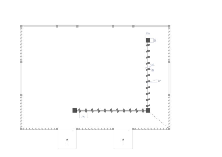 Проект велопарковки представляет собой компактный уличный павильон, предназначенный для хранения 21 велосипеда в непосредственной близости от торгового центра в жилом комплексе.