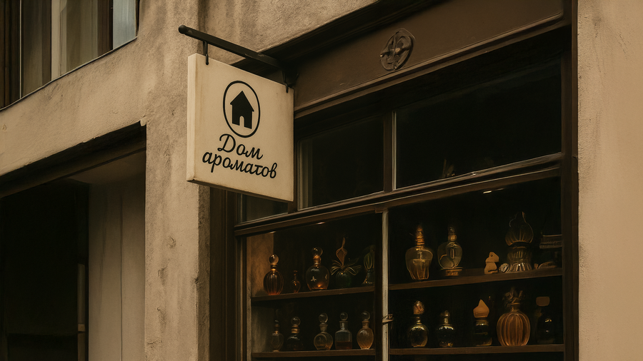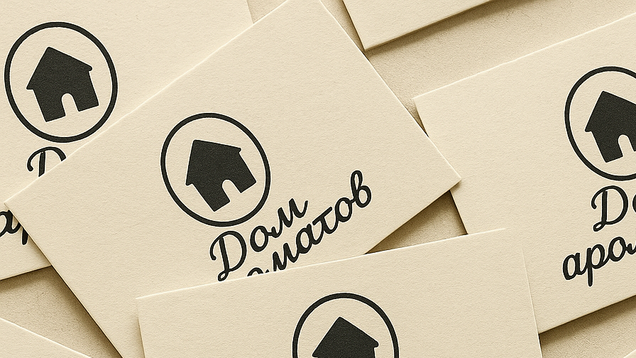 Логотип был сгенерирован в chat gpt 5. Промт: сгенерируй минималистичный винтажный логотип в виде сухой печати с силуэтом дома внутри, выполненный в черных чернилах на текстурированной светлой бумаге. Под эмблемой надпись «Дом ароматов» курсивным шрифтом в ретро-стиле, с легкой неровностью, как будто отпечатано вручную. Эстетика французской винтажной упаковки, естественная текстура бумаги, матовый эффект, мягкие тени.