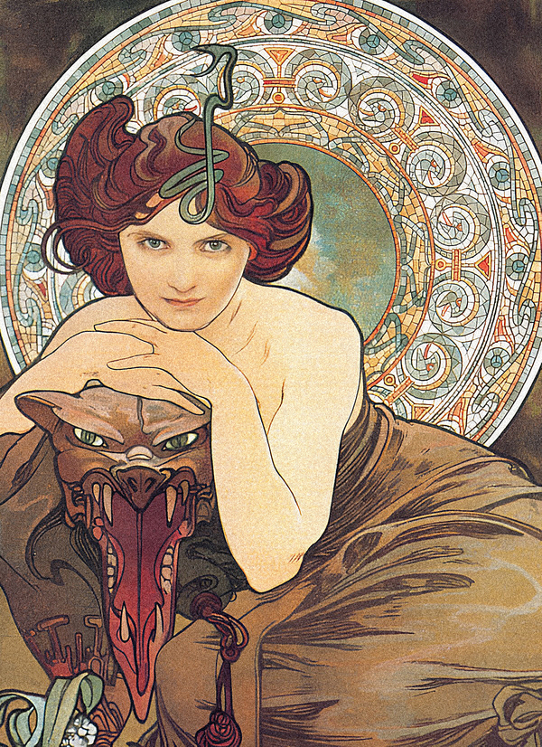 Женский образ у Альфонса Мухи основан на вере в божественную природу женщины. Она символизирует идеал красоты, спокойствия, духовности и порядка в хаотичном мире. Он видели в женщине миссию: умиротворять, вдохновлять, соединять человека с природой. Рассмотрим особенности одного из типов образа женщины в эпоху модерна на примере работ Альфонса Мухи.