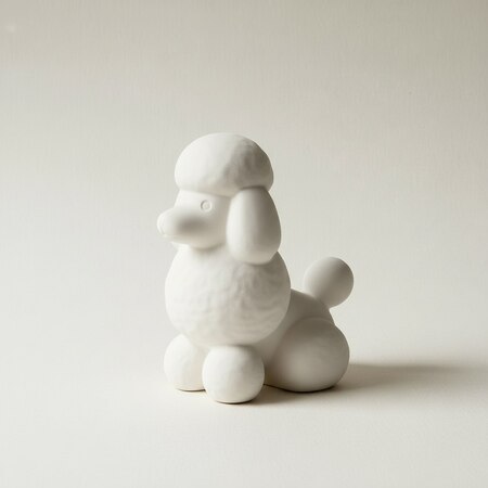 Промт: белая керамическая фигурка, цирковой пудель, минималистичное фото.