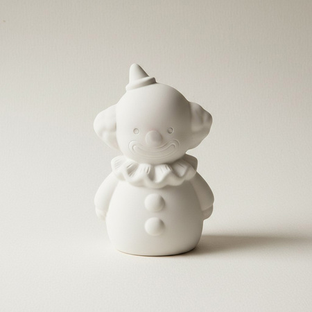 Промт: белая керамическая фигурка, милый клоун, минималистичное фото.