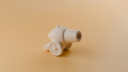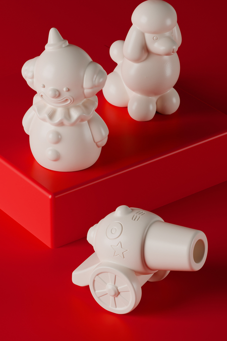Промт: белая керамическая фигурка, милая цирковая пушка, минималистичное фото, белый фон.
