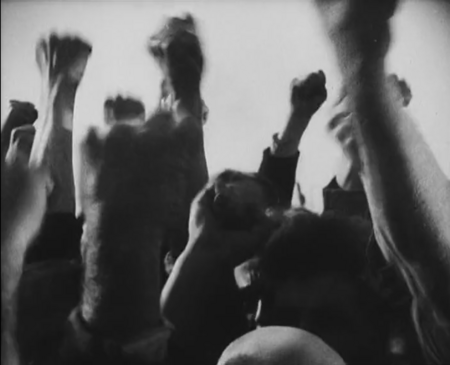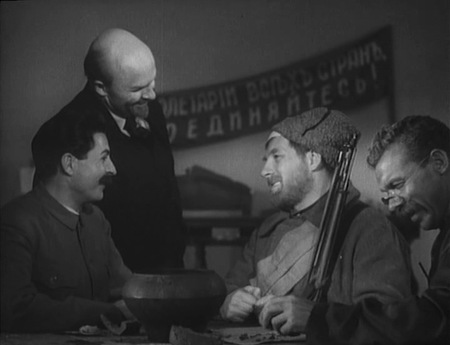 В фильме Сергея Юткевича «Человек с ружьем» все персонажи говорят очень отчетливо, сильно артикулируя. Воспринимая фильм в общем, все эти повторы даже самых мелких движений функционируют как инструмент убеждения.