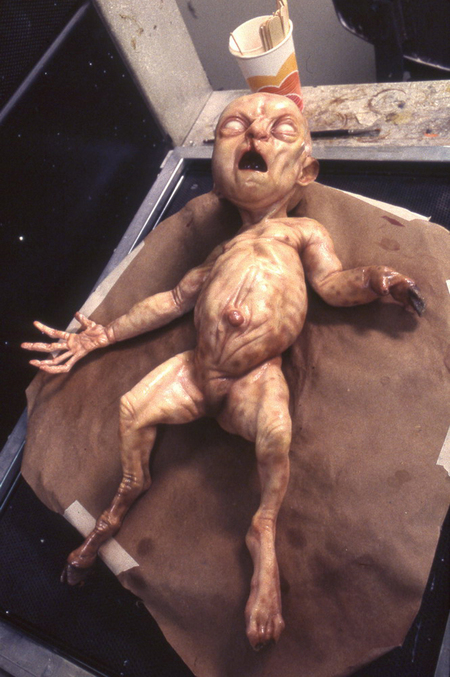 Слева направо: манекен ребенка-мутанта Джоуи Ороско, его внутренняя механическая структура