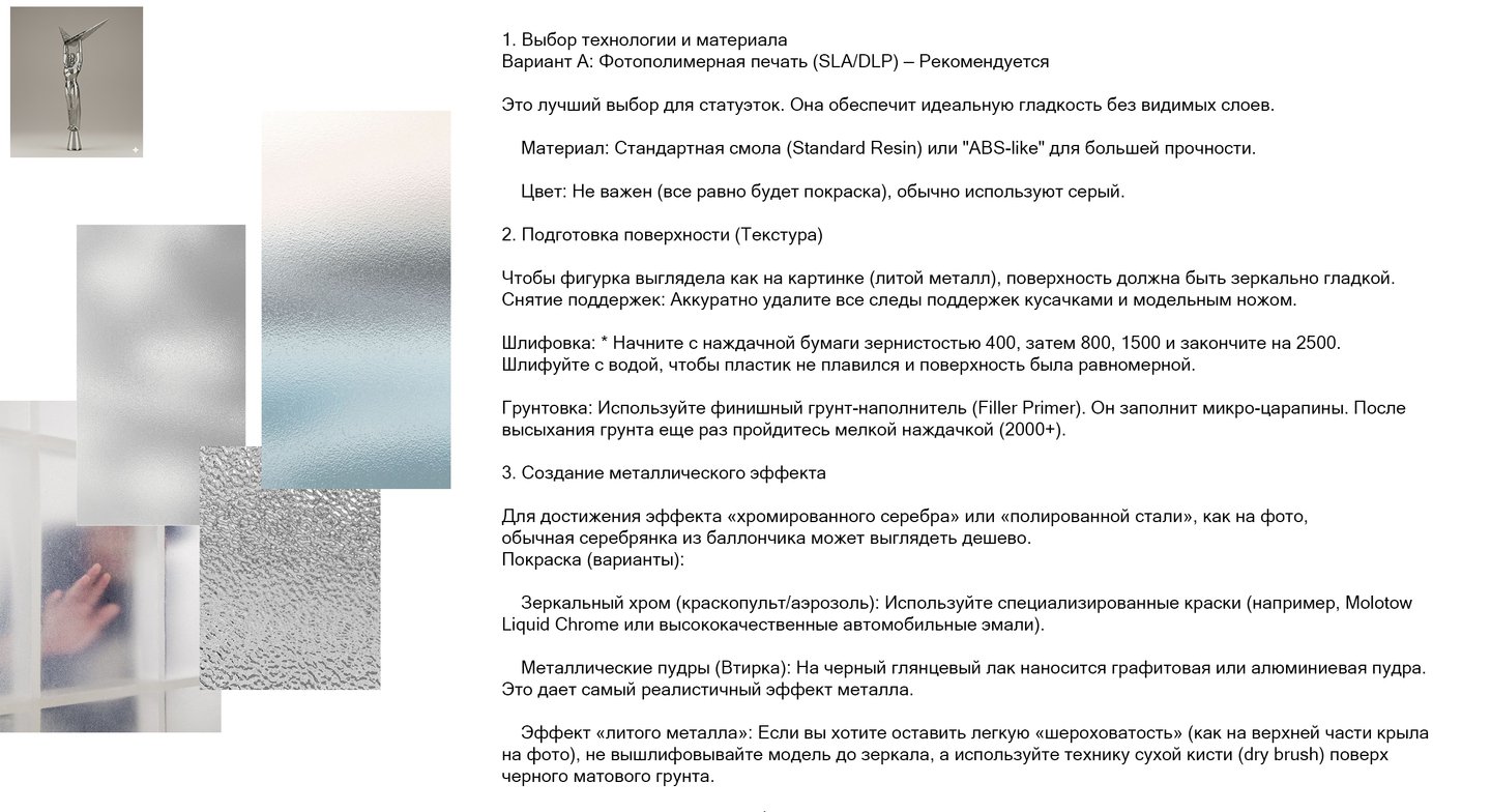 — Описание концепции проекта — Промо-изображения всей серии и отдельных объектов — Изображения эскизов — Изображение с минимум 3 ракурсами каждого объекта в серии (готовой модели в программе) — Рекламный постер для серии объектов — Ссылка на облако с 3д-моделями в формате STL (не архив) — Описание ТЗ на производство (размеры, технология печати, материалы) — Описание процесса с указанием инструментов и последовательности
