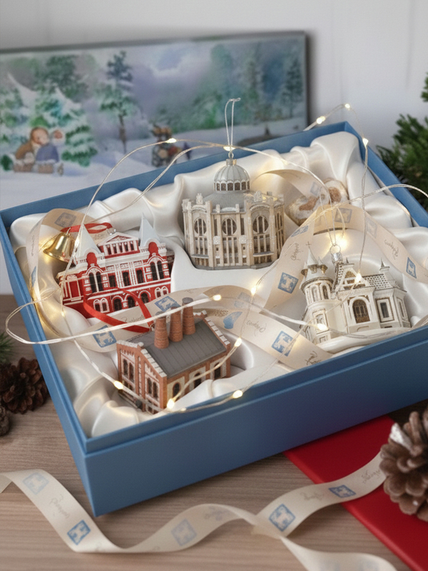 Поскольку приближается Новый Год, было принято решение соединить красоту Самарской архитектуры и ёлочные украшения, стилизованные под винтаж, а иногда отсылающие к уникальным наборам игрушек, продающихся в ограниченным тиражом. С помощью нейросетей был придуман и доработан дизайн каждого украшения, вдохновленный той или иной достопримечательностью города: Жигулевский пивоваренный завод, Драматический театр, Стелла «Ладья», Особняк Клодта, Готический Костел (Храм Пресвятого Сердца Иисуса), Филармония. Завершающим элементом выступает главная доминанта — украшение для макушки елки, выполненная по образу Монумента Славы на Самарской площади.