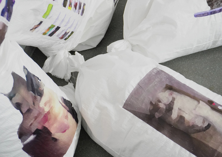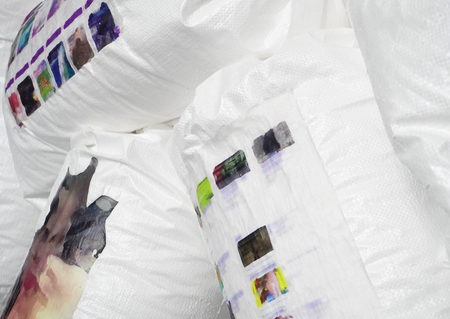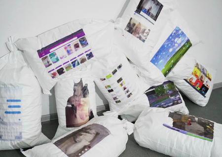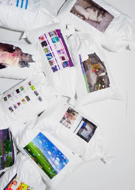 Работа сосредоточена на состоянии накопления, доведённого до предела. Скриншоты появляются как побочный продукт цифровой повседневности и собираются в плотный массив, внутри которого собственный образ, игровые сцены, интерфейсы платформ, торговые и навигационные пространства утрачивают различия и иерархии. Перенесённые на строительные мешки, изображения обретают физический вес и инертность, становясь формой складируемого визуального материала. Баррикадная конфигурация переводит переизбыток в пространственный опыт, где визуальный поток теряет проходимость и сгущается до препятствия