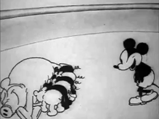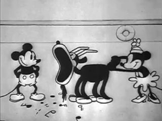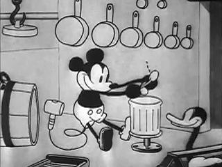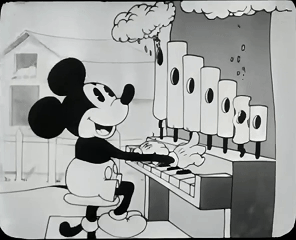 Каждый элемент окружения превращается главным героем Микки Маусом в импровизированный музыкальный инструмент, что интерпретирует пространство в настоящий оркестр: гудок парохода, крики животных и их конечности, стук кастрюль и многое другое.