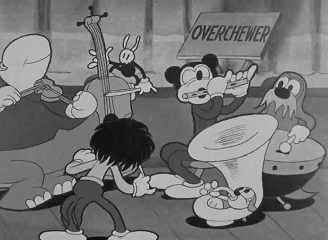 Движения персонажей, в особенности героя Микки, являются прямой материализацией звука. Герой покачивается, дёргается и подпрыгивает, отбивая «свинговый» ритм. Всеобщая «одержимость» музыкой демонстрирует зрителю мир, в котором джаз выступает основой природы мультфильма. В картине анимация становится идеальным средством для изображения преувеличенной пластики персонажей.