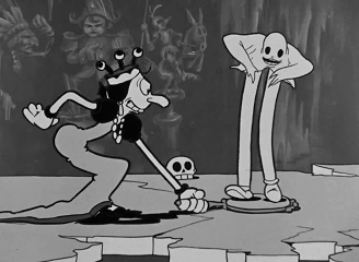 Когда, например, клоун Коко поёт о своей смерти, зритель наблюдает, как его призрак поднимается из могилы. Персонаж превращается в призрачный силуэт, а в конце будто принимает силуэт надгробия. Такой поток образов хорошо работает вместе с джазовой импровизацией. Даже танец скелетов, который появляется позже, подчёркивает не радость, а неотвратимость смерти и всепоглощающую власть музыки над миром живых и миром мёртвых, пусть и в связке с высмеиванием оригинальной сказки о Белоснежке и привычным для подобной анимации юмором.