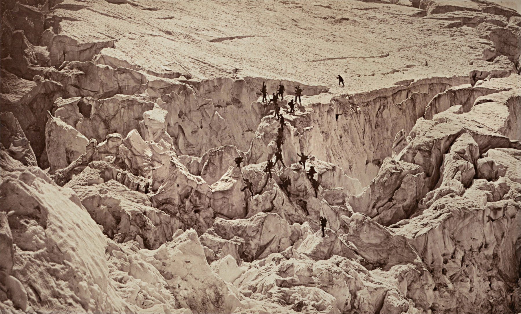 Восхождение на Монблан летом 1861 года. Несмотря на сильный холод, ослепляющий снег и нехватку кислорода, команда успешно добралась до вершины. Биссону удалось экспонировать три негатива. Уже на спуске он остановил команду, снова приготовил палатку, растворы и камеру, чтобы запечатлеть всю окружающую их красоту и затем показать снимки зрителям. До появления снимков Биссона обыватели не могли знать, как выглядит путь к вершине на такой высоте.