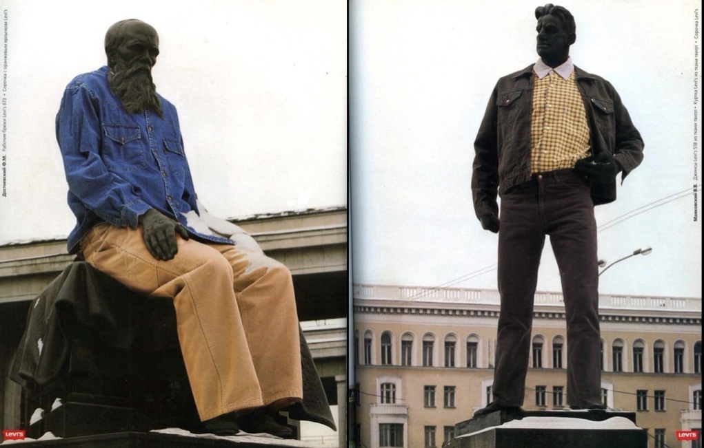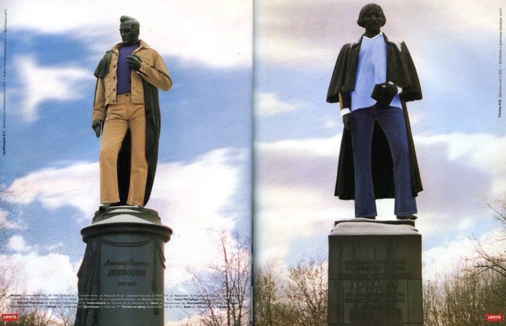 реклама Levi’s в «Птюче», 1998 год / Фото: Михаил Королев, Сергей Артемьев, стиль: Галя Смирнская; Модель: Дмитрий Улиянчук