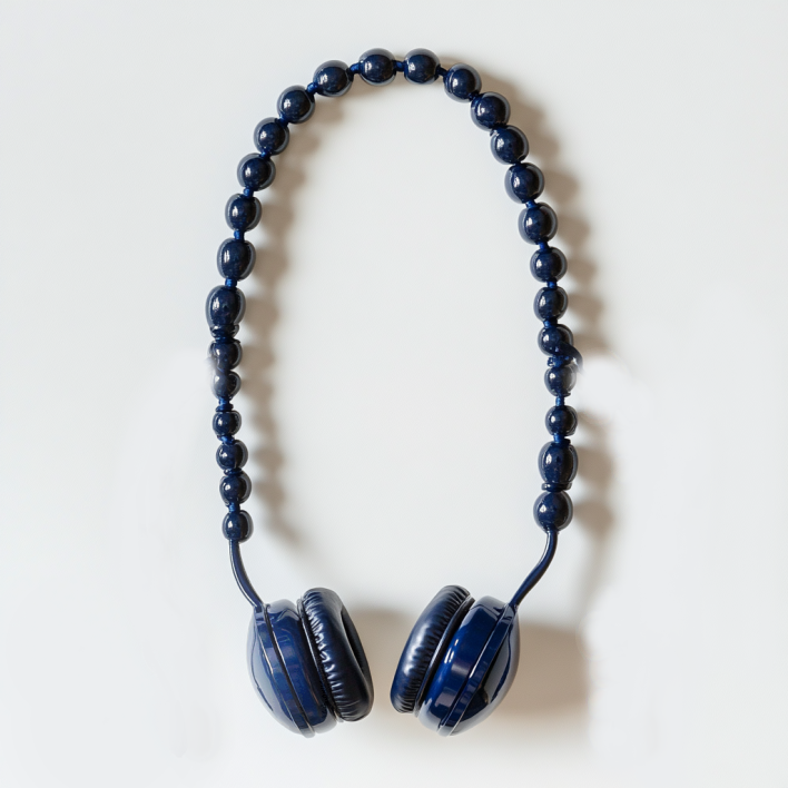 1 шаг: Я от руки нарисовала скетч, используя колье из бренда «levashovaElagina», просто пририсовав к нему наушник. 2 шаг: С помощью нейросети Dzine и функции img2img я преобразовала скетч в реальную картинку и это стало основным продуктом в моем бренде.