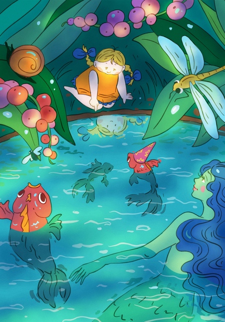 Героиня иллюстраций календаря — любознательная девочка, которая с интересом все исследует и находит волшебство рядом с собой. Розовая шапочка волшебника постоянно сопутствует девочке, напоминая, что в детстве мир видится доброй сказкой и чудесным приключением.