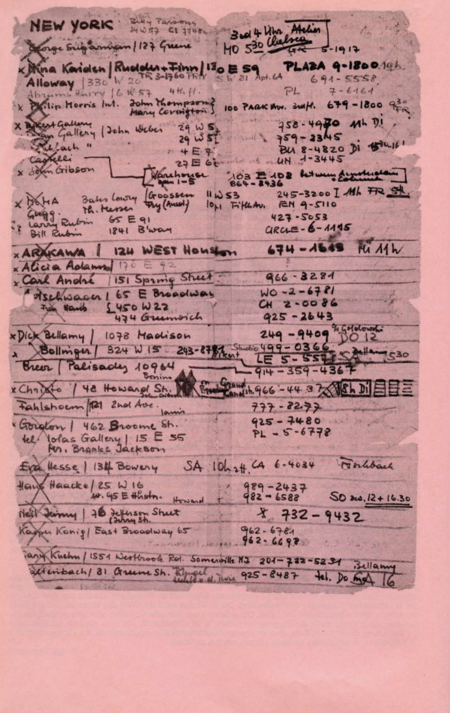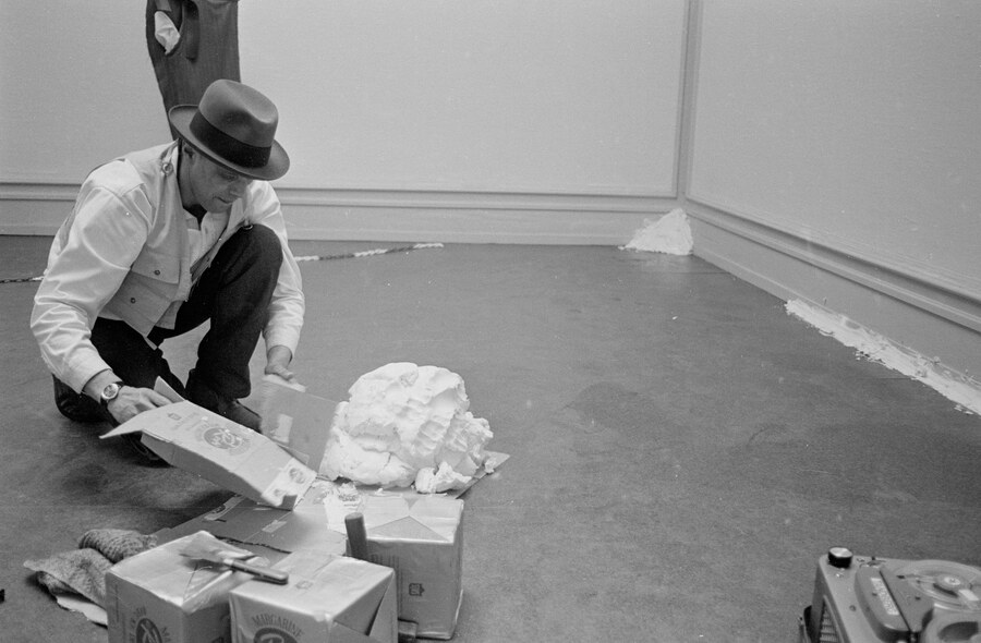— Собственно, сам процесс создания работы тоже стоит рассмотреть отдельно. В 60–70-е годы произведения перестают быть стационарными, они становится процессом, результатом рефлексии и эксперимента. В конце концов, некоторые из произведений перестают исчерпываться объектностью, утрачивают границы. На самой выставке практически половина художников не была представлена традиционными материальными объектами. Вместо этого были, например, документация или инструкции к работам. Эти работы не подлежат экспонированию, зритель не может увидеть их в качестве выставленных объектов, о них можно узнать только опосредованно. В рамках выставки такие роботы художники называли «информацией», которой можно поделиться, а не работой, основано на объектах или процессах;