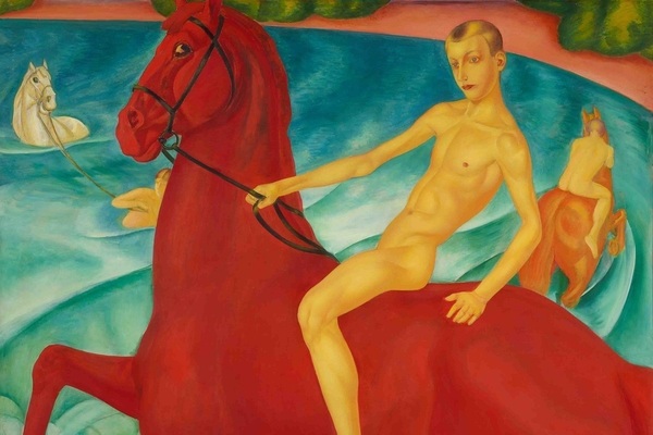 Тимур Новиков, «Строгий Юноша. Портрет Георгия Гурьянова», 1987 г./ Петров-Водкин, «Купание красного коня», 1912 г.