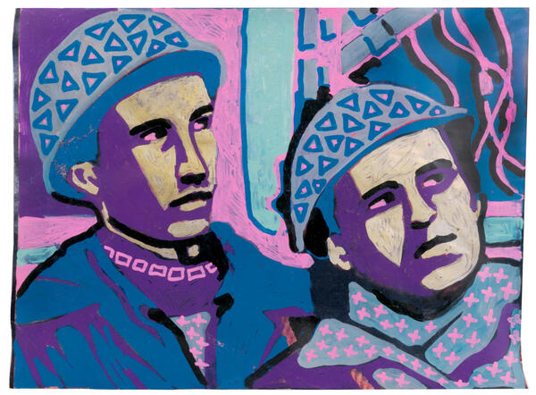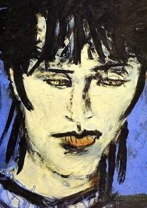 Лица, подчеркнутые грубой линией и крупными плоскостями цвета. Герои поданы фронтально и почти вплотную к зрителю, а увеличенные глаза становятся главным эмоциональным акцентом. Всё это создаёт напряжённый, психологически насыщенный образ и сближает работы с модернистской, экспрессионистской манерой начала XX века.