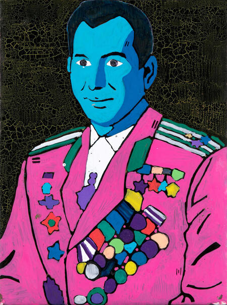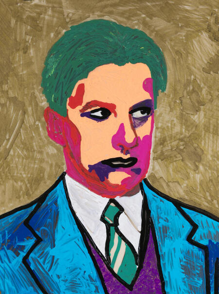 Как и Уорхол, он свободно красит части в портрета в шокирующие цвета, не забывая про тени и мелкие детали.