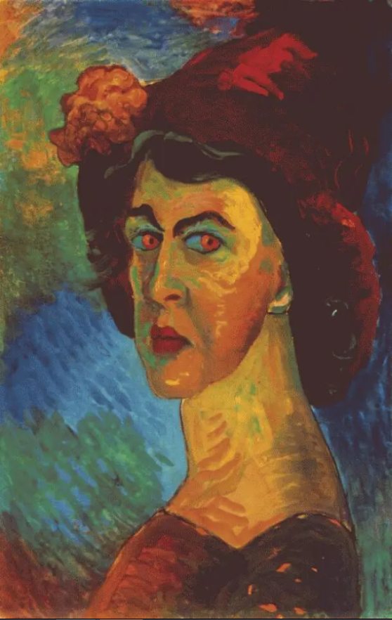 Из фовизма видно заимствование ярких некомплементарных цветов, крупных небрежных масков, нанесенных сухой кистью.