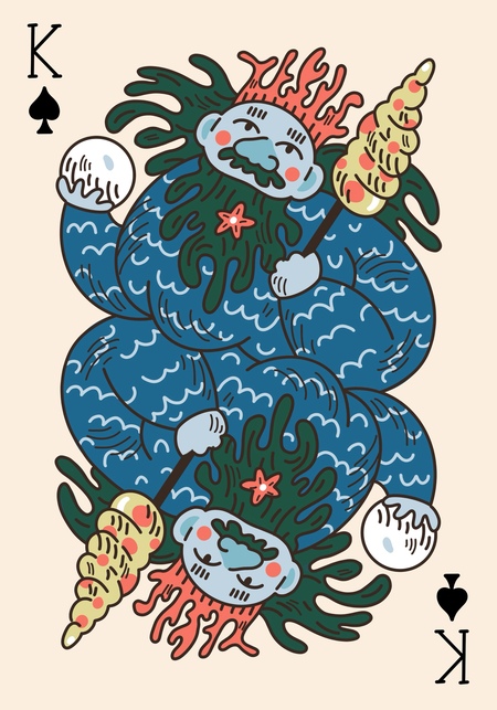 Игральные карты «Четыре королевства» отражают основные 4 природные стихии: Воду, Воздух, Огонь и Землю. В этом проекте яркие особенности каждой стихии показаны через образ и предметы четырех мастей-королевств, во главе которых стоят четыре брата-короля.