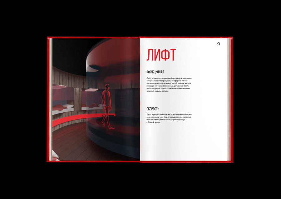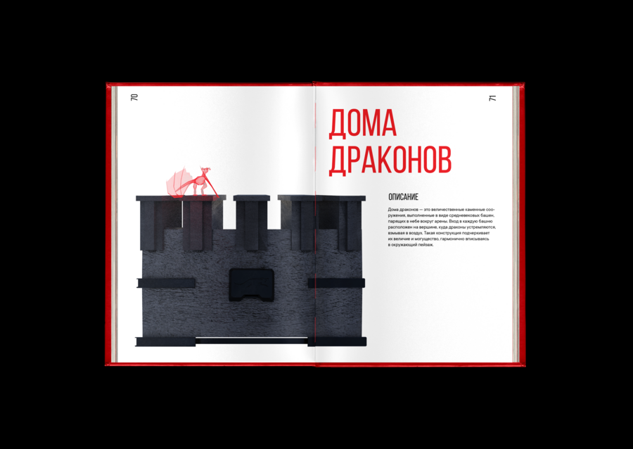 TourDeDragon — рыцарский турнир на драконах в условиях современной технологической действительности, но с сохранением традиций прошлого. Предложение о строительстве здания для проведения турниров было найдено в помещении персонала, что позволяет сейчас узнать об истории пространства.