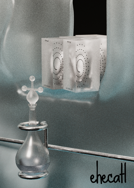 Стенд предназначен для демонстрации портативных ингаляторов-стиков мексиканского бренда ehecatl. Его форма и материал визуально отсылают к воздуху и дыханию, подчёркивая основную функцию продукта — облегчение дыхания и создание момента паузы в городской среде.