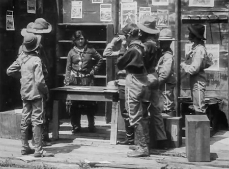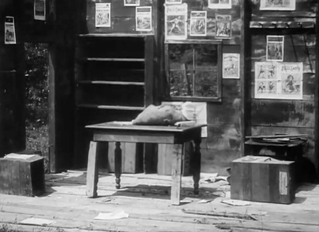 Задники в фильмах Эдвина Портера больше похожи на картины. В них отсутствует перспектива, поэтому элементы задают атмосферу места.