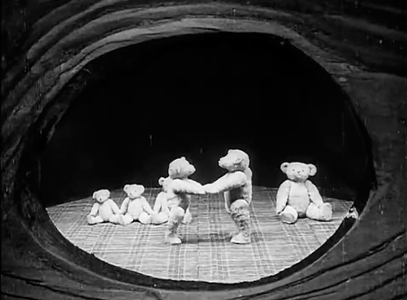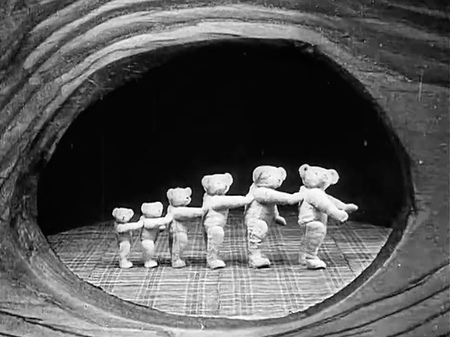 Таким образом, американское кино 1900-х годов демонстрирует четкое построение визуального пространства через декоративность, плоскостность и масштабные контрасты. Симметрия и фронтальная организация кадра создают понятную структуру условной сцены, а живописные фоны и несоразмерность объектов подчеркивают театральную относительность действия. Искусственность изображения выступает как вполне осознанный художественный приём, определяющий принципы визуального языка раннего кинематографа.