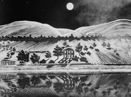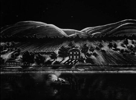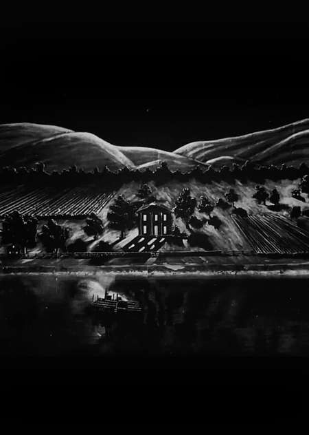 Одна из существенных деталей раннего американского кино, которая меня зацепила — это активное использование живописных, вручную нарисованных задников, которые благодаря изобразительности создают иллюзию глубины, но сохраняют плоскую природу театральной декорации.