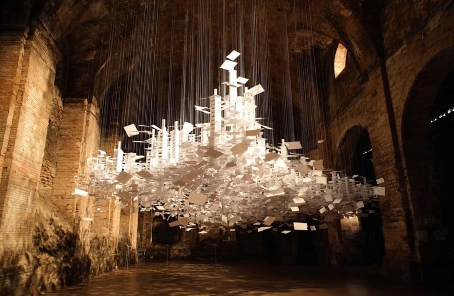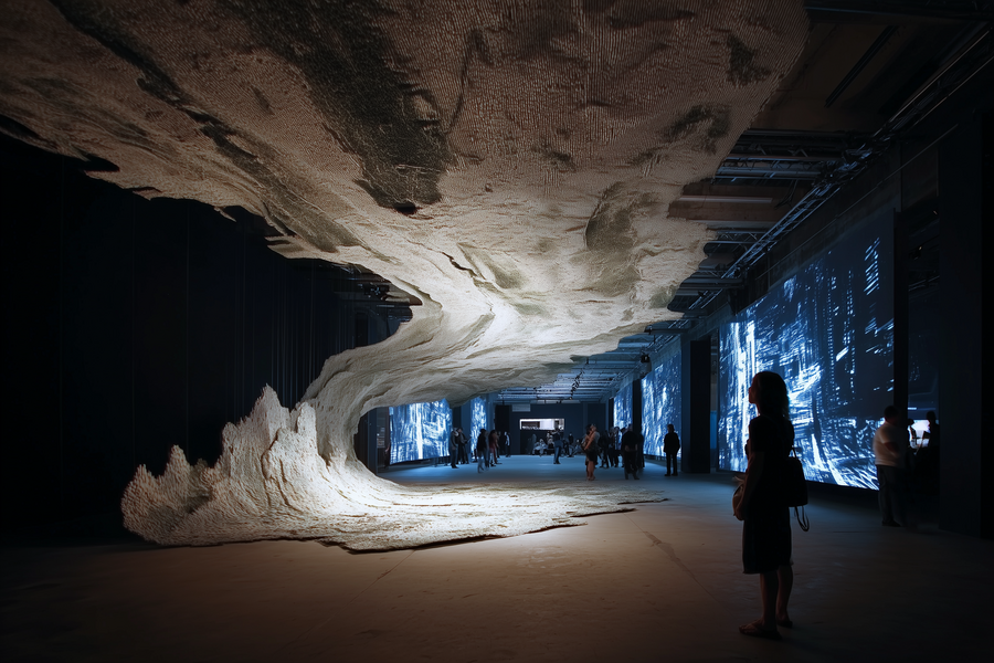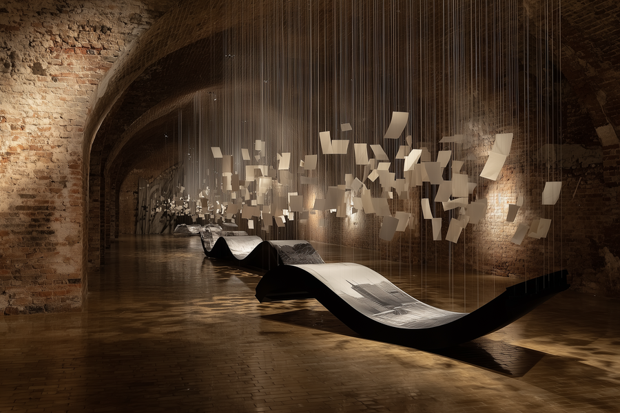 Пространство сочетает интерактивность и созерцание, создавая ощущение, что память о городе живёт через людей, даже когда сам город хрупок и подвержен эрозии.