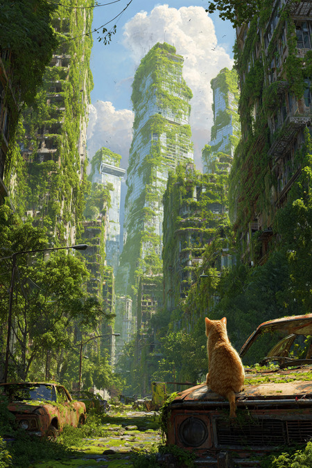 Совершенно иную реальность открывает Джоэлу и Элли (главные герои игры) покинутый город, захваченный природой. При встрече с жирафами доминирует тёплая, жизнеутверждающая гамма: золотистый солнечный свет, сочная зелень проросшей травы и деревьев, мягкие коричневые и песочные тона животных. Естественное, почти сакральное освещение окутывает сцену, создавая ощущение гармонии, покоя и надежды. Этот мощный визуальный переход от унылой серости к цветущему, «пост-человеческому» миру служит ключевой метафорой игры: истинное возрождение жизни и красоты произошло не благодаря, а вопреки человеческой цивилизации и её попыткам сохранить контроль любой ценой.