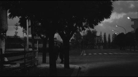Иную оптическую стратегию демонстрирует «Ночь», где размытие фона становится лейтмотивом, визуализирующим распад коммуникации между персонажами. В сценах, изображающих отношения Лидии и Джованни, фон часто намеренно выведен из фокуса, создавая эффект эмоциональной изоляции героев в их собственном мире. Однако, как подчеркивает Пьер Брунет, это размытие не создает интимности, а напротив, подчеркивает метафизическое одиночество. Персонажи оказываются отрезанными не только от внешнего мира, но и друг от друга, существуя в своеобразном оптическом вакууме. Техника малой глубины резкости здесь работает на создание клаустрофобического эффекта, несмотря на формальное наличие открытых пространств.