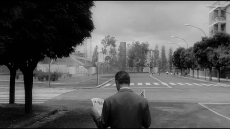 Особого внимания заслуживают сцены в современном особняке Джованни, где игра с фокусом достигает особой сложности. Через окна мы видим размытые очертания Милана — города, который должен быть символическим воплощением социальных связей и коммуникации. Эта оптическая стратегия, по замечанию Молли Тинсли, визуализирует фундаментальный разрыв между приватным и публичным, между индивидуальным сознанием и коллективным опытом. Персонажи существуют в пространстве, лишенном четких координат, где границы между внутренним и внешним растворены, но не во имя единства, а во имя всеобщей размытости и неопределенности.