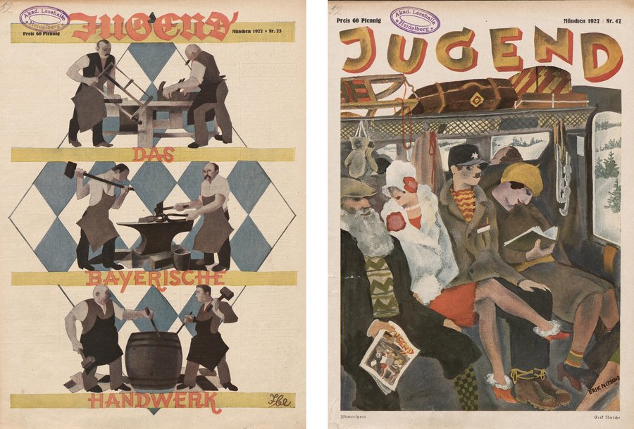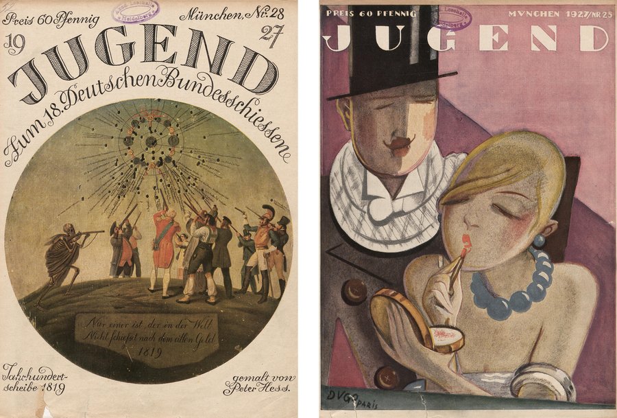 «Jugend» первым среди немецких еженедельников стал выпускать каждый номер с полноцветной обложкой, нарисованной различными художниками. И это того стоило: цветные обложки привлекали внимание на газетных киосках, делали журнал желанным объектом коллекционирования и повышали продажи.