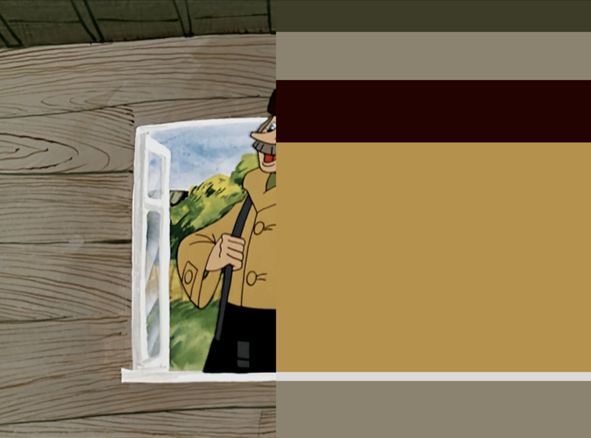 Усреднённая цветовая палитра фрагмента из «Трое из Простоквашино»(1978 г.), реж. Владимир Попов. Ресурс: Adobe Color