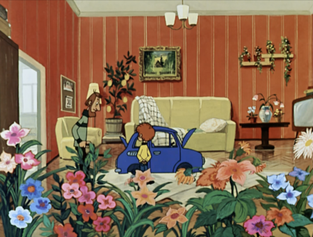 Советская версия: Использование целлулоидной анимации накладывает естественные ограничения на равномерность и насыщенность цвета, а также на степень аккуратности деталей.