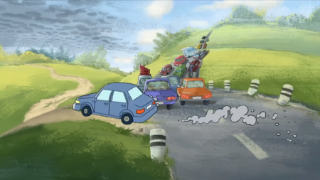 Яркие и насыщенные оттенки помогают зрителю быстро различать объекты и персонажей, поддерживают динамику сцены и визуальную энергию, соответствующую современному восприятию мультфильма.«Простоквашино»(2018 г.), студия «Союзмультфильм»