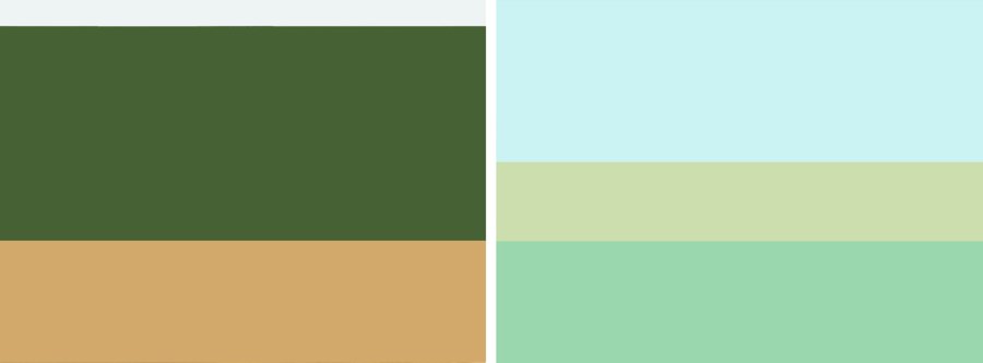 «Трое из Простоквашино»(1978 г.), «Зима в Простоквашино»(1984 г.), «Каникулы в Простоквашино»(1980 г.), реж. Владимир Попов / Усреднённая палитра пейзажей оригинальной трилогии. Ресурс: Adobe Color