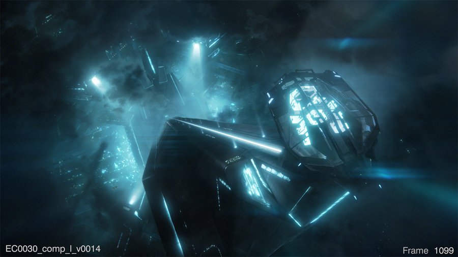 Процесс визуализации Распознавателя в 3D / финальный кадр «Трон: наследние» 2010 г. / супервайзер VFX Эрик Барб