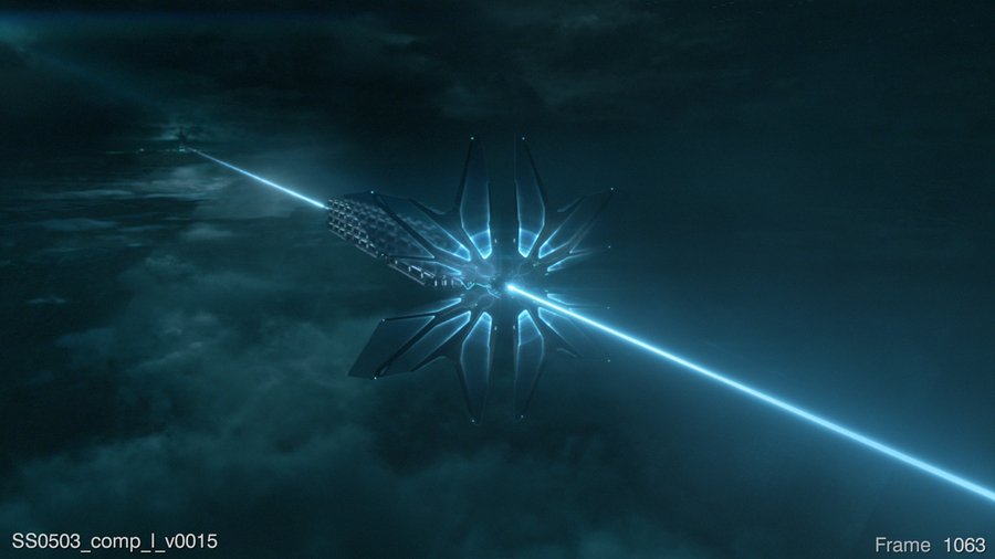 Практически все кадры с кораблём были созданы этой студией, помимо кадра где один из пузырей (Sea of Simulation) падает на луч данных. Данный кадр был сделан следующей студией. (MAGI)