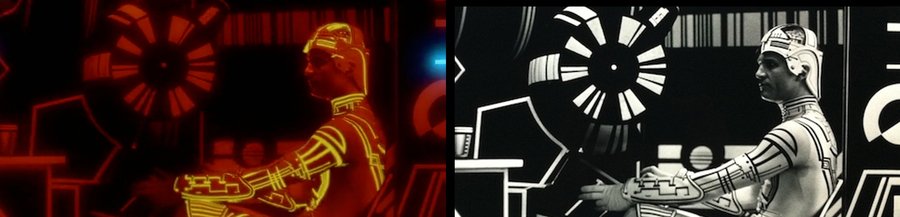 - Концепция - Трон 1982 г. 1. Светящиеся линии. 2. CGI. 3. Комбинированная анимация. - Трон: наследие 2010 г. 1. Илюминация на костюмах. 2. Омоложение персонажа. 3. Анимация транспорта 4. Окружающая среда. - Вывод - Источники