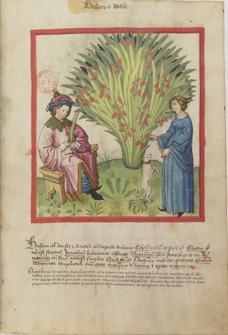 Пример таких иллюстраций — трактат «Tacuinum sanitatis», написанный багдадским учёным и врачом Ибн Бутланом. Текст трактата был переведён с арабского на латинский, книга была иллюстрирована. Несмотря на то, что это научная работа, текст трактата посвящен здоровому образу жизни, поэтому художники не стремились передать растения анатомически точно