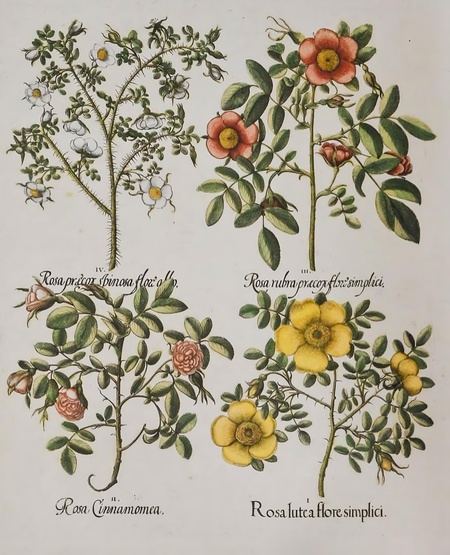 Hortus Eystettensis, Basilius Besler «Section of Roses» 1613