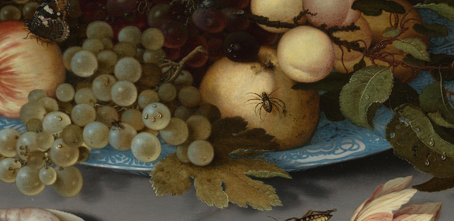 В таких натюрмортах можно заметить завявшие цветы, гниль, насекомых. Все это — символы быстротечности времени. Особенно часто встречается бабочка, в более поздних работах — пауки.