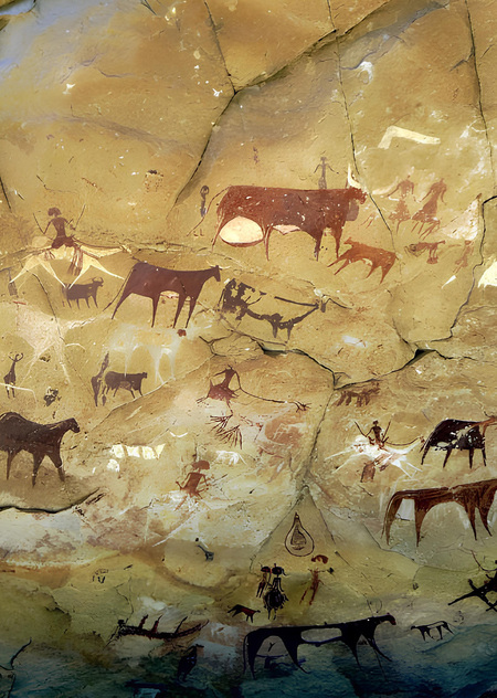 Неизвестный автор. Животные в церемониальных одеждах, пещера Лас-Гель, Сомалиленд, ок. V тыс. лет до н. э.