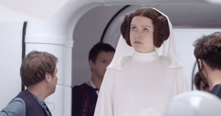 Финальный шот с Леей: это прямое продолжение кадра из фильма, а зритель знает лицо Кэрри Фишер до пикселей.